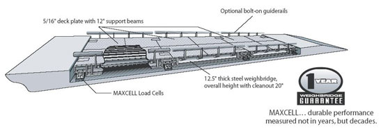 Penscale's MaxCell Weighbridges or truck scales are designed to provide reliable performance under the most demanding conditions, our truck scales are built with more structural steel, a superior support structure and innovative design features that provide consistent accuracy, less downtime and longer scale life.